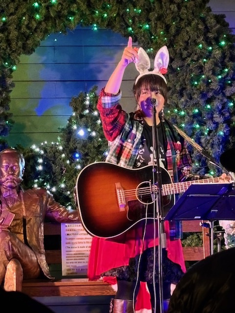 鳴りやまない拍手に再びステージに現れた彼女は、赤いマントにグッズのうさ耳をつけ、客席にもうさ耳をつけるよう促す。そして全員がうさぎになったところで皆を月に連れていくかのように「うさぎ」を歌い、最後はアルバムにも収録されている、オリジナルのクリスマス・ソング「Very