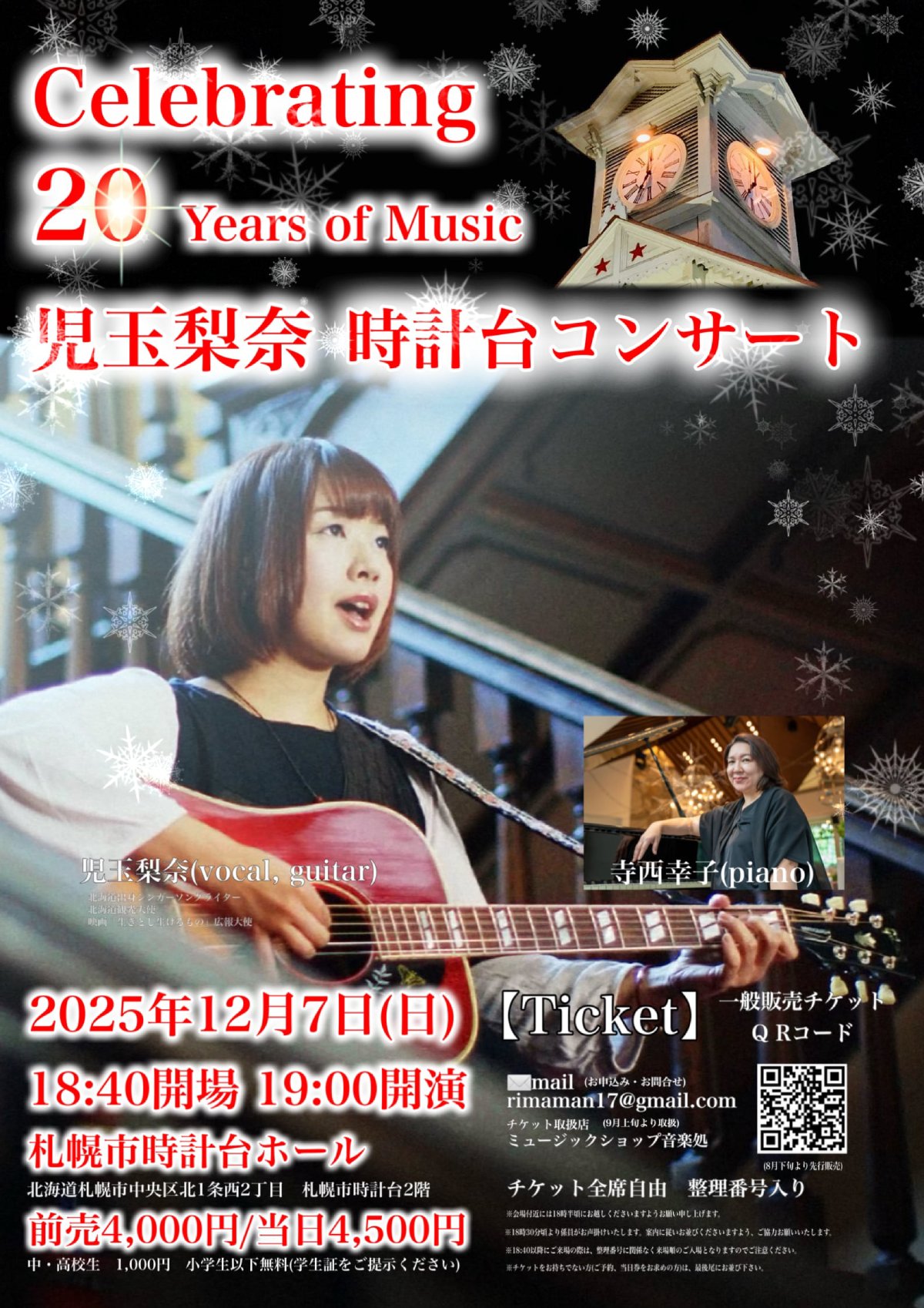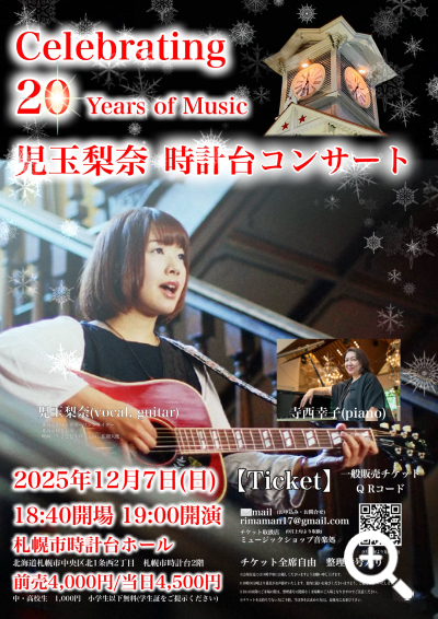日ごとに寒さが募り、街に師走の華やぎが増え始めた12月7日、札幌・時計台ホールで開かれたシンガーソングライター児玉梨奈のコンサートに足を運んでみた。