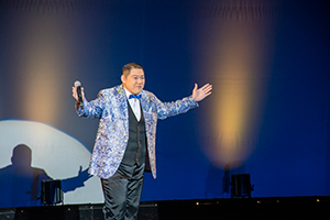 それからの彼は、ド演歌から歌謡曲までこの五年間に幅広い曲調の作品にトライし、この日は思い入れのあるデビュー曲の他にも、演歌調メドレーと歌謡曲調メドレーの両方を披露しながら客席と交歓する一場面を見せたり、先輩歌手のカバー(伊藤久雄の「イヨマンテの夜」の見事な歌いっぷりと声量には客席も目を見張っていた)も披露したりと、その成長ぶりを印象付けた。そして満を持して最新曲「寒い国から来た手紙」を歌いあげ、客席からのひときわ大きな拍手に包まれると、先輩大江にバトンを渡した。
