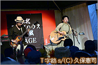 この日レッドスターフィールドでBEGINの歌声に癒された後、隣接するレッドスターカフェに登場したのがT字路’sという男女のユニット。しゃべる声からは想像しにくいハスキーなダミ声と巻き舌で、がなりたてるようなブルースを聞かせる。ウェットな部分とドライな部分が不思議に調和して、爽快感すら漂う独特の世界を創り上げ、落日とともに強烈な印象を残した。