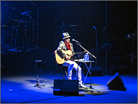 「心には青い空」「scene」と最新アルバム「最高の一日」からの2曲を挟んでトーク。客席ははやくも熱を帯び、場内の滑り出しは上々と見てとれた。いつものようにそらさないトーク、放たれる熱い想い、そして歌。いつしか聞き入っていしまう。「東京」「雪の花」客席の千原さきが息をつめて聞き入っている。矢継ぎ早に繰り出されるトークと歌の攻撃にさらされ、会場全体が笑ったり感動したりしながら、心の中を潤されたり、温められたりするひとときだ。「がんばってね」を歌う頃にはずいぶん喉が柔らかになってきたように感じられた。