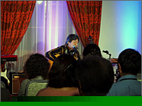 雨に包まれた豊平館は、宵闇迫る中シックなたたずまいで、ステージが始まるのを今や遅しと待ちかまえていた。期待に満ちたざわめきが客席に広がり、クラシックな装飾に室内の空気も一段と高揚して行く。と、照明が落ち、ライトの当たるステージに山木が登場するや、拍手の渦がわきおこる。いよいよ「45年目のFlying」のスタートだ。